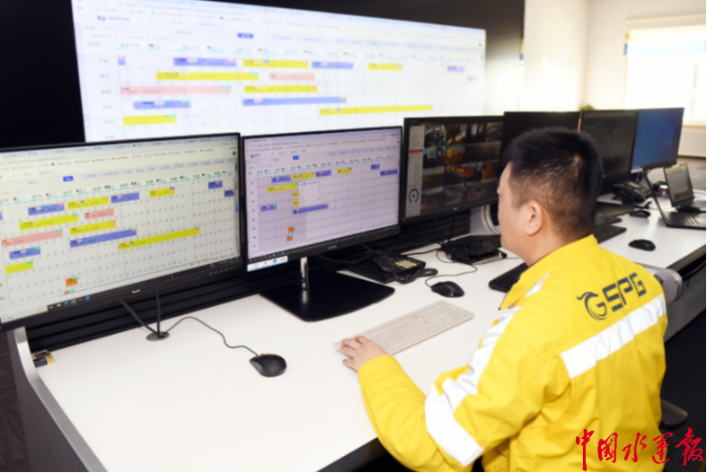 山东港口青岛港前港公司主动化控制中心内,调度计划员赵天宇正在操作泊位计划智能体调度体系。